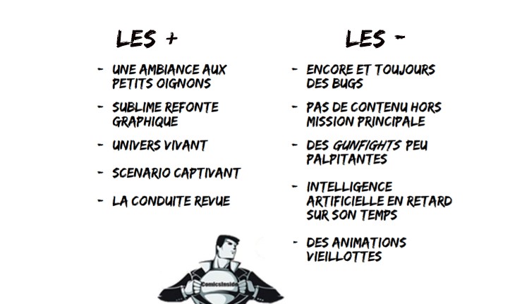 Malgré cela, le titre parvient à convaincre et sans difficultés, qui plus est ! Ses bugs, ses animations datées et sa pauvreté en matière de contenu sont noyés au sein du magnifique travail réalisé par les équipes de développement, le tout prenant la forme de superbes graphismes, d’une bande-son magnifiée ou encore d’un scénario palpitant. Mafia : Definitive Edition est donc une réussite mais encore faut-il l’appréhender pour ce qu’il est : un jeu d’ambiance au scénario maîtrisé pour lequel le monde ouvert n’existe que pour appuyer la quête principale.