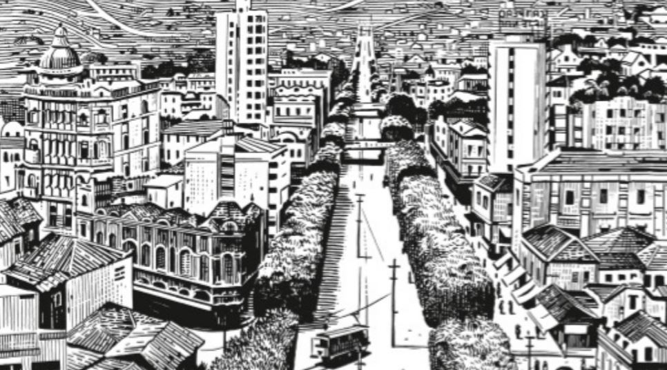 Ensuite, c’est le trait de l’artiste qui attirera l’œil des plus curieux. Tout en noir et blanc, Chumbo intègre un style tout à fait reconnaissable, proche de la caricature et, par ce biais, mettant en exergue les expressions faciales. Et le moins que l’on puisse dire, c’est que les scènes de colère, de tristesse ou de surprise sont du plus bel effet ! En outre, les compositions sont inventives et détaillées, et poussent le lecteur à prendre le temps d’observer les nombreux paysages, bâtiments ou badauds qui fourmillent de toutes parts.